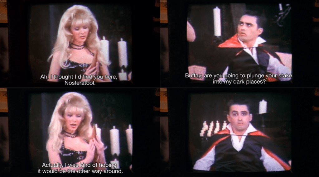 In Pink Flamingos, Divine’s character’s efforts to be the “‘filthiest person alive'” enact the taboo, while also almost seeming like an absurdist take on the queer villain trope, though that might be anachronistic (though there is Captain Hook from Disney’s Peter Pan in 1953, and probably others). Wikipedia’s list of the film’s taboo enactments–“exhibitionism, voyeurism, sodomy, masturbation, gluttony, vomiting, rape, incest, murder, cannibalism, castration, foot fetishism”–definitely reminded me of South Park. I guess sometimes things that seem like shock-value schlock are actually making a more significant point about what dictates the boundaries of cultural acceptance…