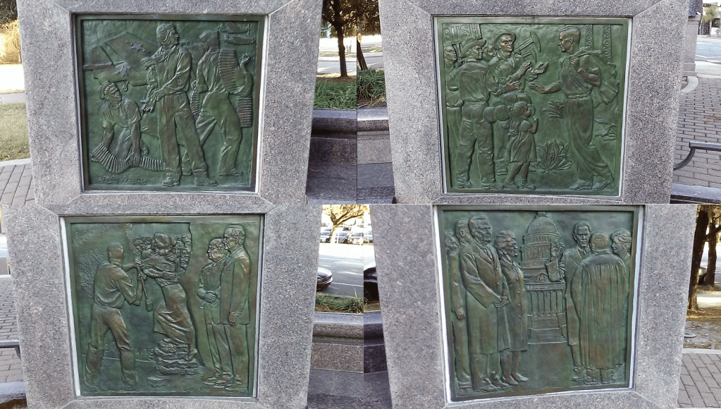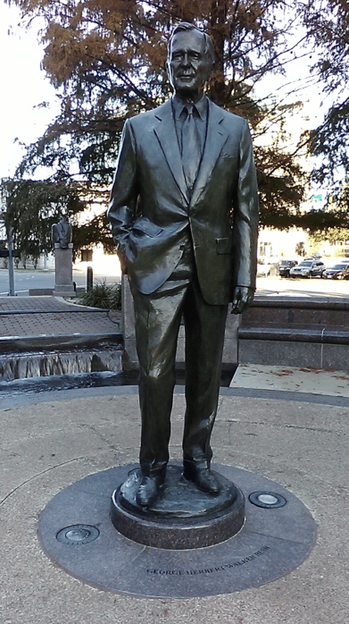 Bush originally hailed from snobby New England, where his father was a Connecticut senator named Prescott who initially worked “as a Wall Street executive investment banker,” but George (known in the family as “Poppy”) made his fortune down in Texas, eventually settling here in Houston and tapping the burgeoning offshore drilling market in the nearby Gulf of Mexico. After his time in office, he lived here until he died not quite two years ago, triggering a spate of articles extolling his heroism. There is a fairly elaborate monument to him here downtown that was dedicated long before he died, in ’04, which emphasizes how important both oil and war heroism are to his narrative.