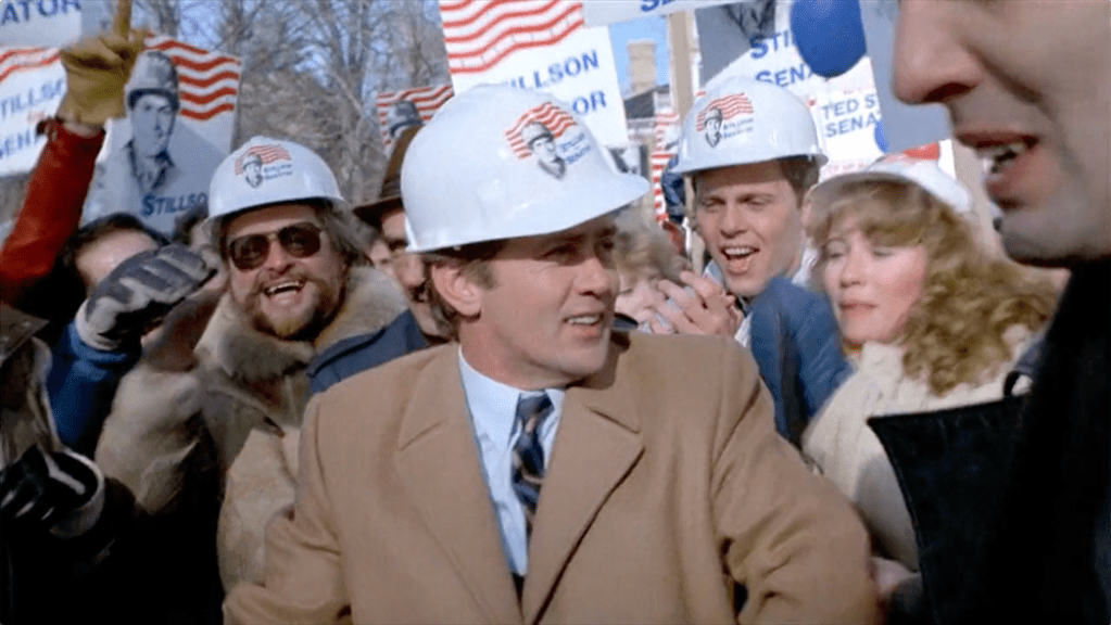 Stillson showing his true colors via the “dark blue snowmobile suit with bright yellow piping” worn by the baby he uses as a shield is enough to kill his political prospects just a few years out from Watergate; a certain orange-complected politician showing his true colors, conversely, only furthered his political success.