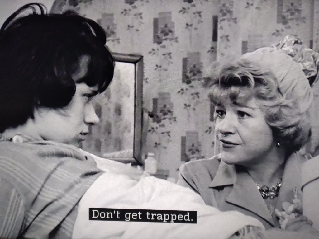 Another racially associated invocation of bees (or the commodity they produce)–one that, as we’ll see in Carrie, seems to play with overlapping versions of “labor”–is the 1958-play-turned-1961-British film A Taste of Honey, in which a white working-class seventeen-year-old girl is taken care of by her gay bestie after being impregnated and then left by a Black sailor. Racy…