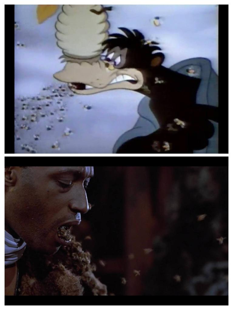 The cutting off of the hand in the Candyman legend is similar to the bees in being arbitrary horror in Barker’s version, and more historically loaded in the film version. The reason why the hand symbolism is more historically loaded takes us back to Song of the South by way of cartoon animation. The scholar Nicholas Sammond explains the critical link between blackface minstrelsy and the cartoon industry: