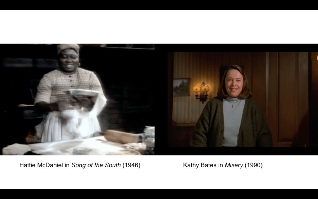 It also turns out the figure of Annie Wilkes is evoked both via this first female stereotype category alongside a racial one; the critic Gregory Phipps has recently offered a fascinating reading of the infamous Annie Wilkes constructed as the stereotype of the “mammy figure,” which is one of the three categories of stereotypes frequently invoked with Black women, with the others being the Jezebel (the slutty woman) and the Sapphire (the angry woman). The mammy figure is a prominent stereotype in Sue Monk Kidd’s The Secret Life of Bees (2001):