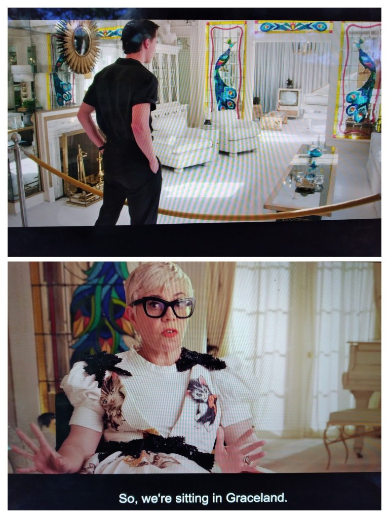The legalese reminiscent of the nonsense discussions in Alice brings us back to contracts, which is another confluence between the twin Kings: how they got screwed on them. A crux of Elvis is when Parker signs Elvis into an extensive Vegas residency that he’s aware is not what Elvis would want: contract terms are scrawled on a cocktail napkin while up on stage Elvis sings that he’s “caught in a trap,” the refrain of “Suspicious Minds.” The cocktail-napkin contract functions as a version of the writing on the wall for Elvis–his imminent ending.