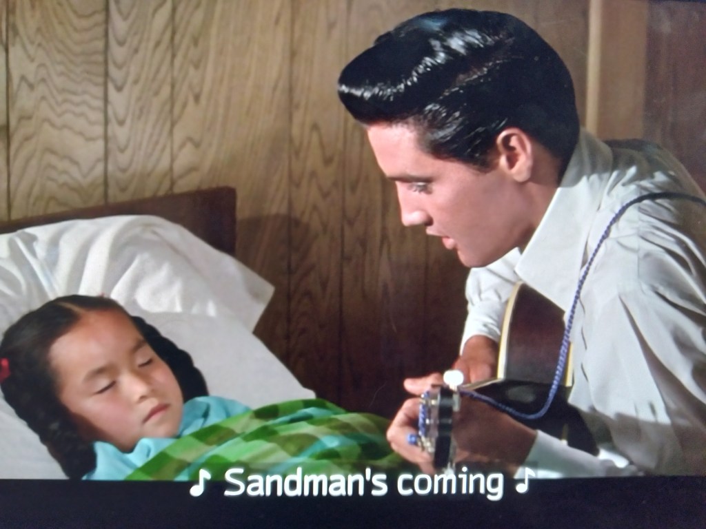 Elvis opens with a version of the song “Cotton Candy Land,” which opens with the lyric “The snowman’s comin'”: this is an alteration of the version of the song Elvis recorded in 1963, which opens: “Sandman’s comin’.”