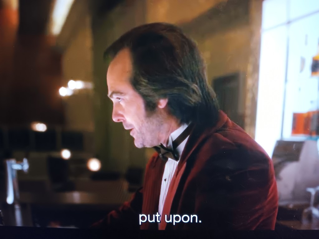 …this Doctor Sleep scene’s formulation could represent two opposing poles on a spectrum of approaching King adaptations, with the “based upon” end indicating more severe adjustments of and additions to the source material in a potentially more strenuous “put upon” mode, while the “based on” side of the spectrum maintains content more in line with the original. (Presenting an adaptation as based “upon” also emanates a whiff of pretension potentially out of keeping with the King aesthetic that might make King feel more “put upon”.)