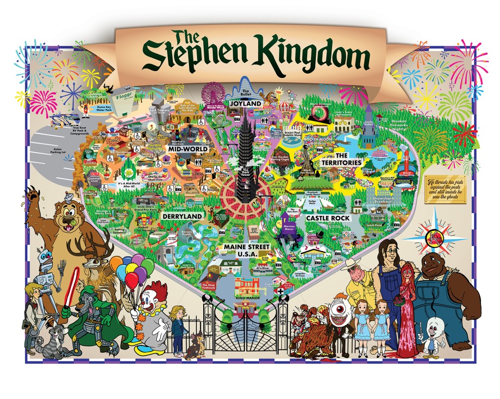 It was Maura Grady who asked me in the Q&A after my talk where I’d gotten the Disneyization idea, or rather, if it was Tyler Jacobs’ (aka TJ Wiggles) rendering of “The Stephen Kingdom” that I used in my slideshow that was the source of it: