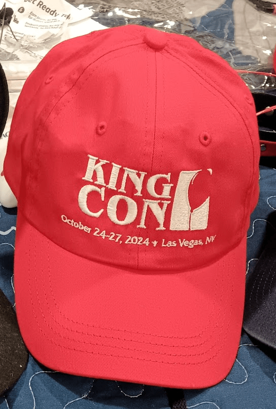 In the days leading up to an election that would have a not unprecedented outcome, an unprecedented event of sorts took place, the inaugural KingCon in Las Vegas, from October 24-26, 2024. (All of the merch lists the dates as Oct. 24-27, but in reality the event concluded on the 26th.) Las Vegas is a fitting location for such a King-themed event primarily due to its prominence in one of King’s most significant works, The Stand, as the pole to which the evil survivors of the world-ending superflu are drawn under the aegis of Randall Flagg, while the good survivors are drawn to the Magical Black Lady Mother Abagail in Boulder, CO. It was my first time in Vegas, and I was not surprised to find it the epitome of all things wrong with America in terms of consumption and excess. (And of course there’s the Trump Hotel pocking the skyline.) If we were conserving the ungodly amount of electricity this town in the middle of the desert is using in its flashing neon lights, it seems we could power human civilization for at least another thousand years.