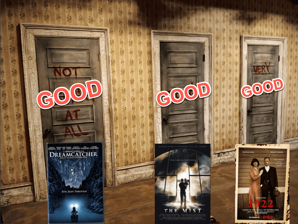 In his KingCon Kingcast interview, the actor Thomas Jane called King a literary master that we’ll be studying in a hundred years, which, as a King scholar, is a sentiment I concur with. I’d say the three King adaptations Jane has been in, Dreamcatcher (2003), The Mist (2007) and 1922 (2017) are spread relatively evenly on the spectrum of bad to good adaptations–though as they discuss in the interview, Dreamcatcher is not necessarily a bad adaptation since it’s actually fairly reflective of the book–it’s the book that’s bad (though personally I don’t mind it).