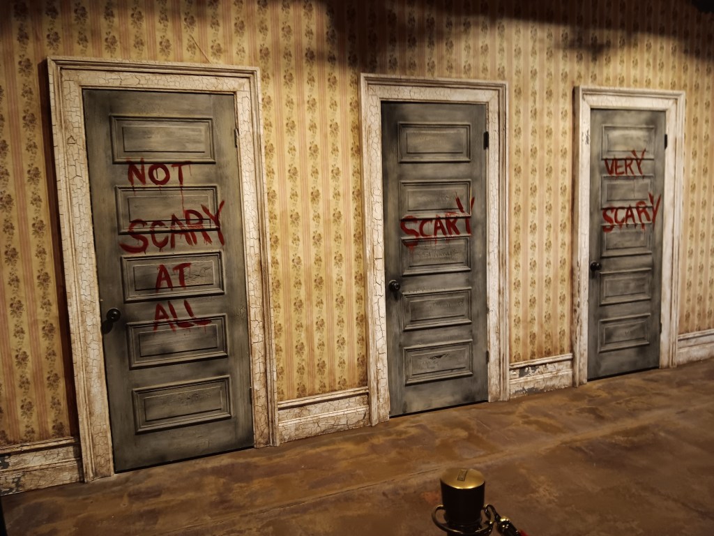 The “Funhouse” replicates stages of the second movie a little more thoroughly than the Sewers replicates the first one, starting at Jade of the Orient, including the Kersh apartment and Funhouse, and culminating in the cavern with the Spider Pennywise where we had to actually hold hands and stand in a circle shouting “Turn light into dark” like they do at the end of the second movie. (You’re pretty much trauma-bonded with your group by the end, so this didn’t even feel weird.) The funhouse part of the Funhouse rooms is a bit more involved than the funhouse setting that appears in the movie, but the mirror maze sequence is the most intense part, with strobe lighting, an actor screaming to be let out of a glass box they’re locked in, and Pennywise chasing you in circles. I have to commend the staff actors, Pennywise and otherwise. For me, it was an unprecedented immersive experience: it feels like you are in the movies! Of course, fiction itself is an immersive experience in the way it operates on the brain, but the escape room immersive experience was another layer of real v. imagined.