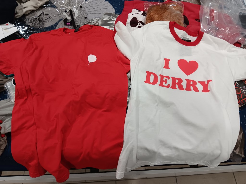 This logo marries King novels and King cinematic adaptations–the novel and the 1990 miniseries associate Pennywise with balloons of all colors; it’s the 2017 adaptation, that critical text of the King Renaissance, that associates exclusively red balloons with Pennywise. Hence, a lot of the KingCon merch is the red of this balloon and logo, including, rather unfortunately, its cap: