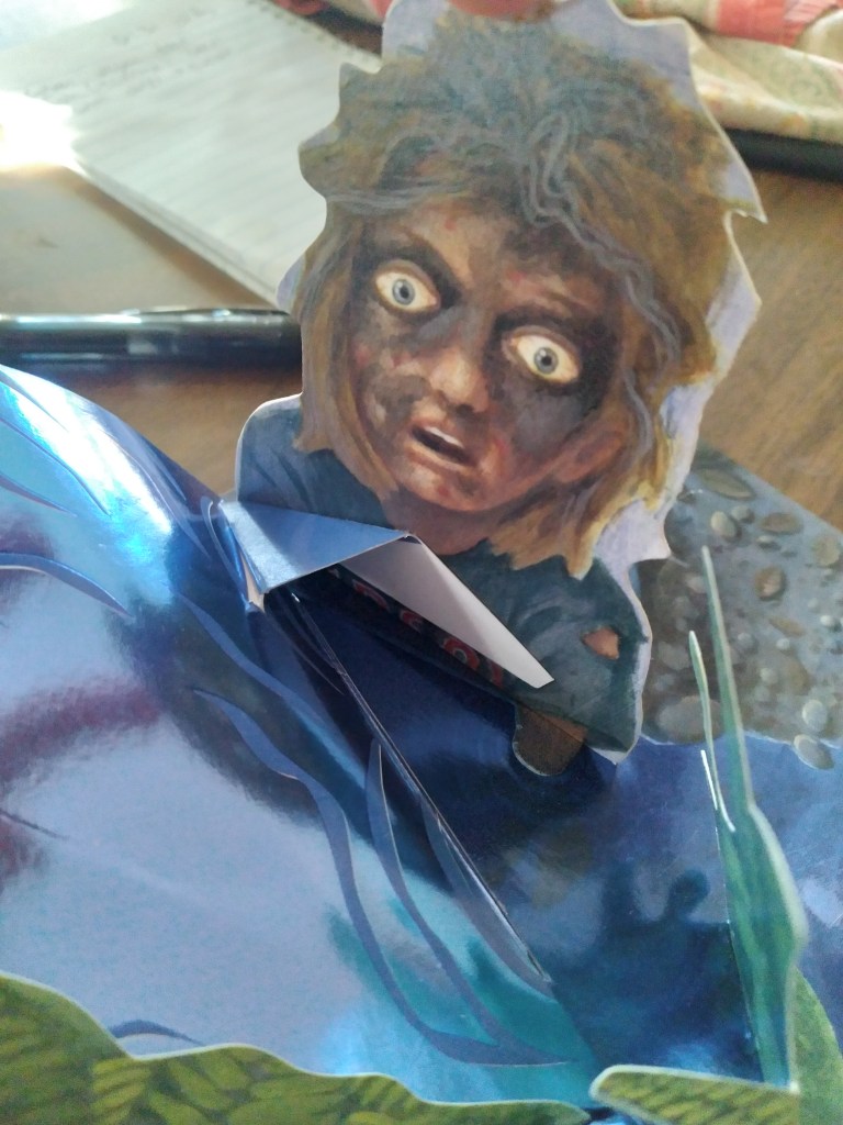 It’s started to seem to me that the rabbit hole of Shining-interpretation theories can drive one as mad as the Mad Hatter, and that when you go down this rabbit hole via the YouTube algorithm, it does feel like you’ve entered Wonderland itself–a land of nonsense. Except there’s a degree of logic in Wonderland’s nonsense that surpasses the logic of a lot of these theories. Possibly one of the craziest theories, or collection of theories, I’ve seen is from a guy who’s named his site on the project “Eye Scream,” who’s done a bunch of time-code and page-number analyses of where things line up. The issue with the page-number thing–in King’s novel Danny enters Room 217 on page 217!–is that he’s using the paperback edition, when the first-edition hardback would not have had the same page numbers, and King would have had no concept of what the pagination of the final published version would be as he was writing it. (Also, I have the paperback edition he’s using and Danny technically enters Room 217 on page 216.) This guy is also obsessed with the “mirrorform” version of the film, where you play the film backwards from the end superimposed over it playing from the beginning. That would seem to derive from Alice-related themes–the idea that “the film is meant to be watched forwards and backwards simultaneously” is a thematic echo of Danny going backward over his forward footsteps in the maze–though Alice doesn’t come up very prominently in his discussions. Elements of things he says make more sense than others; some of the lines and diagrams he draws look like that classic crazy conspiracy-theorist mood board. He has done an extensive cataloguing of the hundreds of pieces of art that show up in the film (if drawing some very questionable conclusions from a lot of them, and pulling from images in the film that make it very hard to tell how the piece of art is even recognizable from how small and blurry it appears). He also mentions Stith Thompson’s Motif-Index of Folk-Literature and claims that Kubrick has left numbers correlated to the tales he references throughout the film (again often pointing to images claiming the numbers are on it that to me seem illegible).