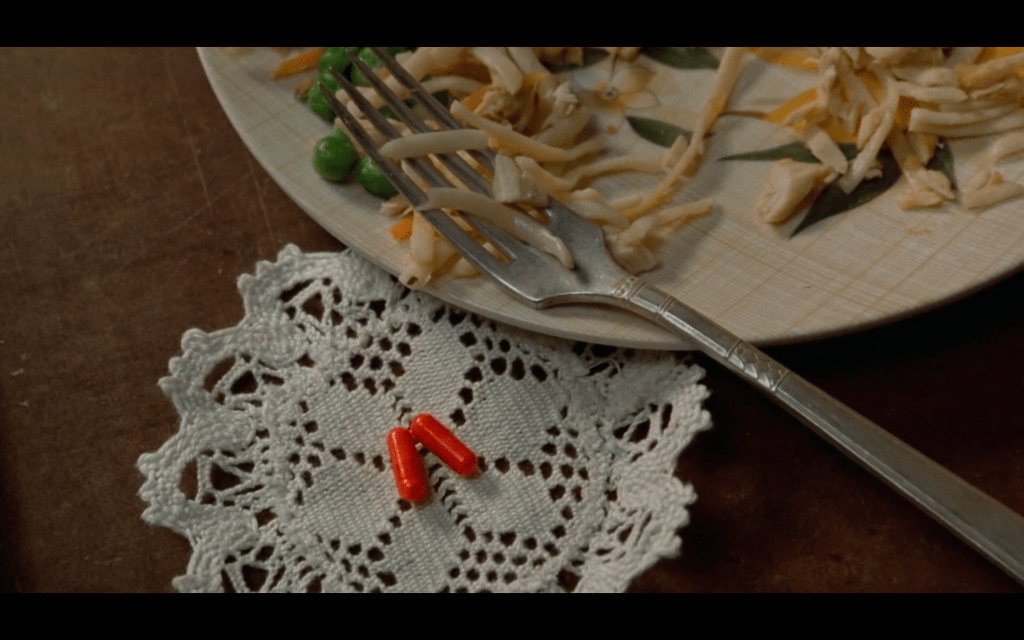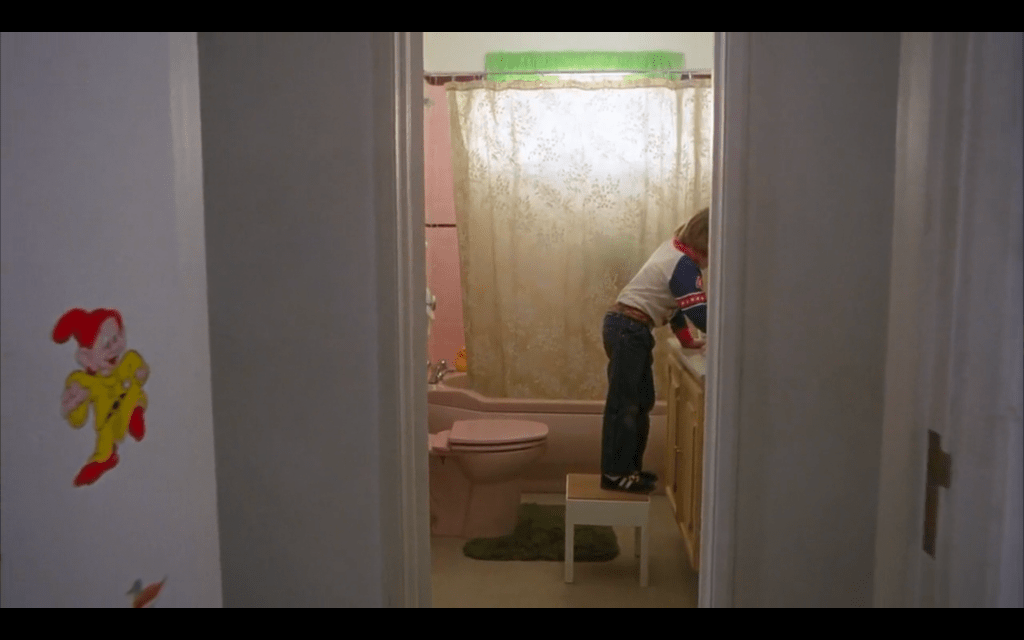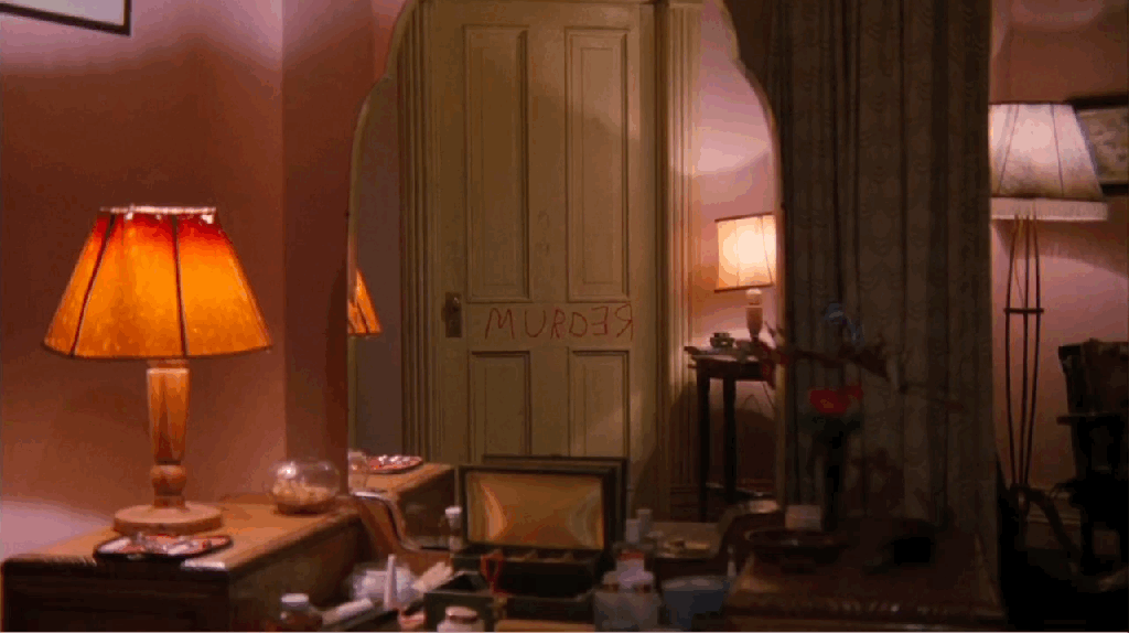 Danny wears this in the scene where he talks to Jack in the apartment, who’s shown at the beginning of the scene reflected in a mirror (twinned because you can see him and the reflection). This echoes the Jungian parental complex Curran talks about King getting at with his Bluebeard and Alice references in both Danny and Alice being under threat of beheading by parent or parental figure (43). Jung describes the child’s “imago” of the parent figure, or image that’s part the parent figure but part derived from or a projection by the child himself, so it is “‘therefore an image that reflects the object with very considerable qualifications’” (44). A picture in your brain can hurt you…