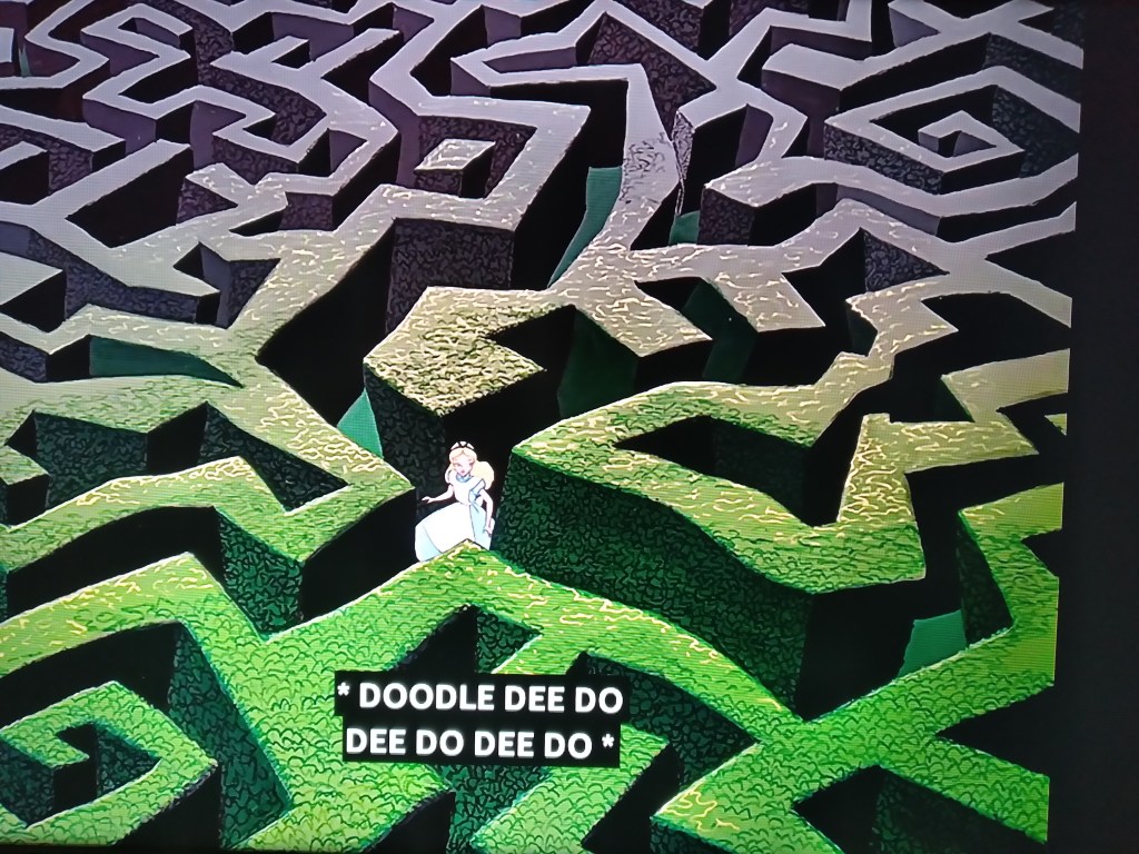In terms of deviations from source texts, I have been searching for a satisfactory answer as to where Disney got the idea for the hedge maze in his Alice that’s not in Carroll’s version, and where Kubrick got the ideas for the hedge maze and blood tide. For the latter, Google AI responds: