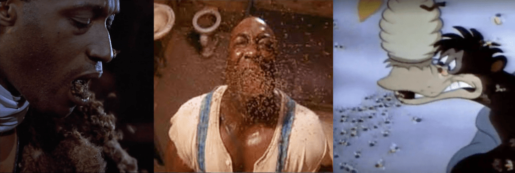 It was when I was listening to the Kingcast guys discuss the episode and recap this that it occurred to me it was a fitting metaphor for how King’s work (including its adaptations) have become the primary lens through which I view the world–or put another way, have taken over the way I see the world–and facing the possibility that his presence as such amounts to an internal parasite that I’m now spreading through this and other platforms. If that’s disturbing, it resonates with the use of the “viral” metaphor Holtmeier and Wessels invoke in their Theorizing Stephen King article “Towards Infection: Viral Adaptations of King”–using the “viral adaptation” concept “to define examples where the adaptations mutate beyond the scope of the original text” with the mutations taking from other aspects of King’s work–which the use of The Shining‘s Dick Hallorann and the appearance of the lockboxes from Doctor Sleep in Welcome to Derry offer further support for.