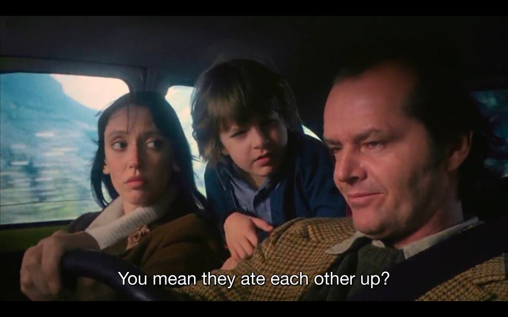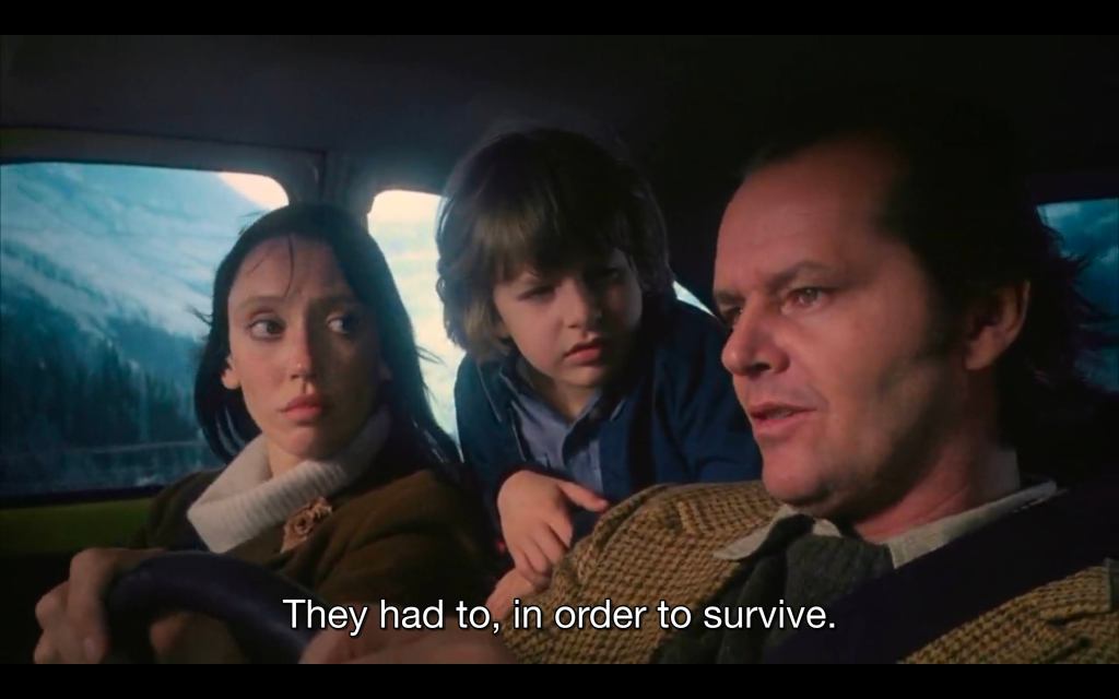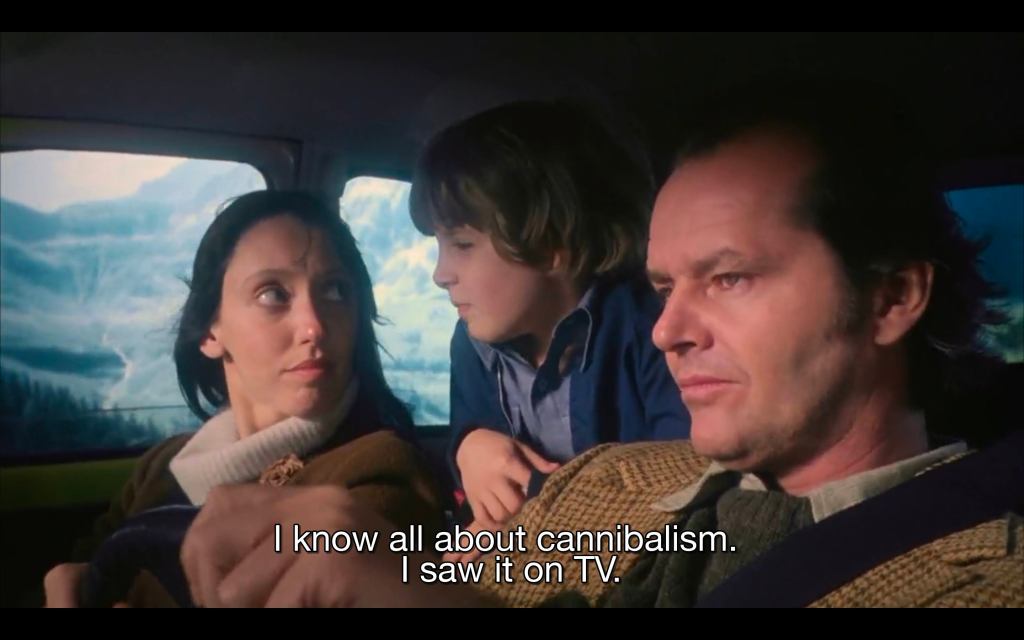 According to James Naremore, ‘The emotions [Kubrick] elicits are primal but mixed; the fear is charged with humor [sic] and the laughter is both liberating and defensive.’7 Because this alternating register is based so deeply in emotion rather than intellect, The Shining refuses to be interpreted neatly on a social or cognitive level. (Blankier 4)